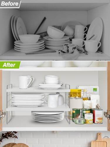 - ✅ Make the Most of Every Inch – With its adjustable height and extendable width, this kitchen cupboard shelf helps you fully utilise awkward cupboard storage organiser space. Whether in a narrow cabinet or across your kitchen counter shelf, it brings instant organisation without mess.