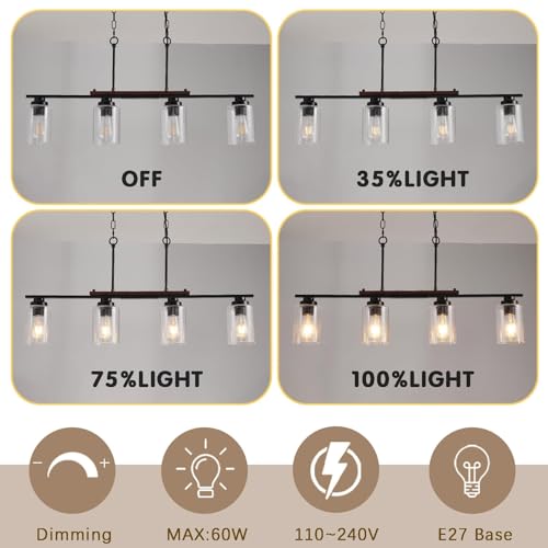 - 【Modern Rustic Design】: The kitchen island lights are made of black Metal and Glass body to add a modern and rustic farmhouse style feel. Industrial ceiling lights bring fashion and warm to your life while escort the health of you and your family! Pendant light fitting .