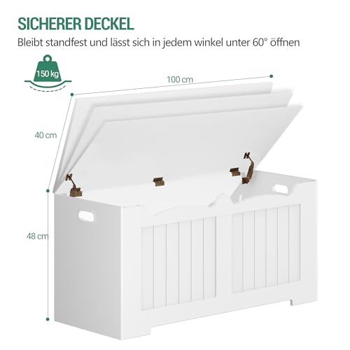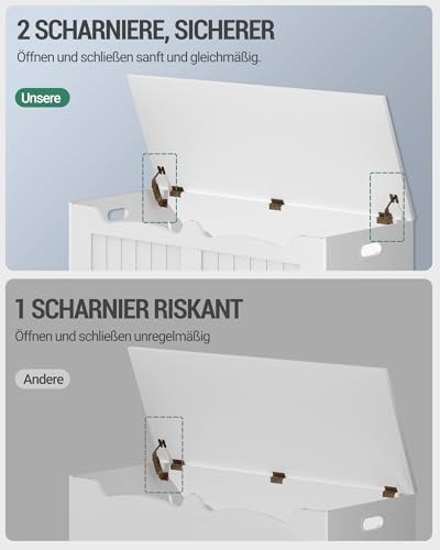 - Sturdy and Stable: Made of premium particleboard, this wooden storage bench is much more stabilized, the 2 security hinges allow the lid to hover securely, prevent hand pinching, making it secure for daily use