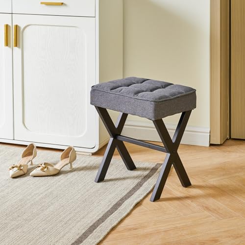 - High quality: This stool comes in two options: linen and synthetic leather, paired with black X-shaped metal stool legs to ensure durability and enhance product aesthetics.