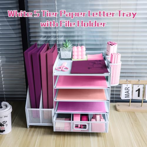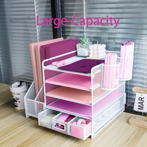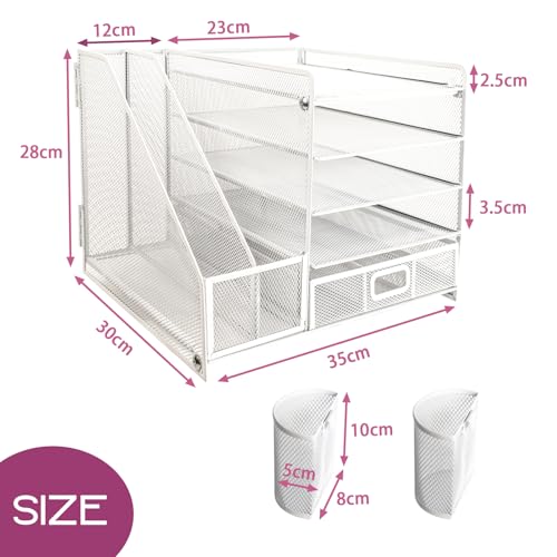 - Multifunctional desk organiser: 5-tier paper organiser letter tray + 2 file holders + 2 pen holders + 1 drawer. Through the comprehensive organization of all office supplies, our 9-in-1 file folder is enough to complete the order of desk documents and maximise space utilization