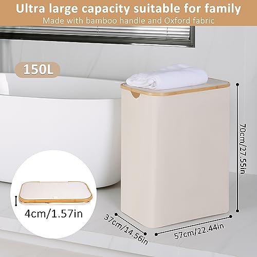 - 【Make Laundry Easier】The bamboo handle is smooth and won't hurt your hands when using it. The lid design of the basket can prevent odors and provide you with a clean environment. It can provide more storage space and the ability to organize clothes, helping you keep your family and dorm tidy