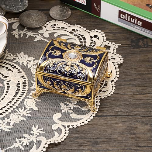 - Chic and Gorgeous trinket storage box-The box surface with carved pattern to add a exquisite and luxurious touch. This jewerly case made of zinc alloy will withstand daily use. Is a elegant and modern way to decor your room and organizer your jewelry