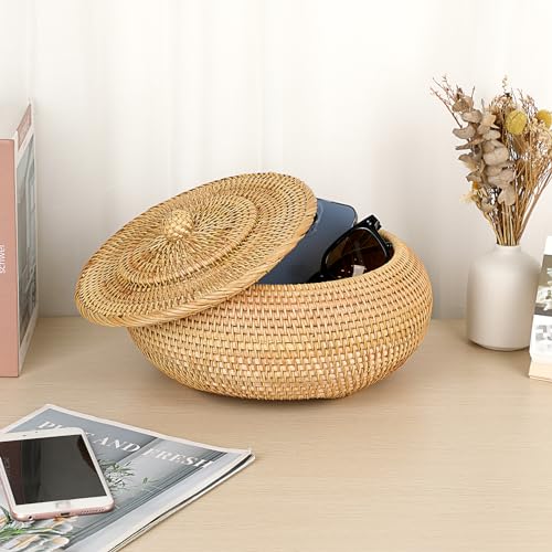 - This Decorative basket is designed with a lid to keep your items organized and hidden from view, giving your space a neat and tidy appearance. Suitable for dressing table, shelves, desk top ,cabinet or nightstand, etc.Well to use in the living room, guest room, hallway or in the office, shop or at the reception