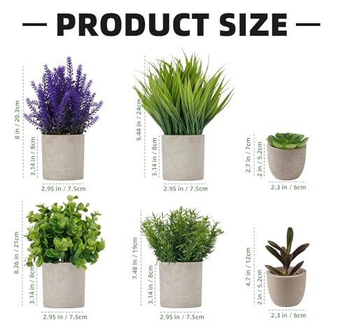 - What You Get: Package includes 6 Decorative Artificial Plants: Eucalyptus, rosemary, lavender, aloe vera, succulent. The artificial plants indoor are extremely realistic and perfect for small spaces, all in its own paper pulp pot for easy displaying