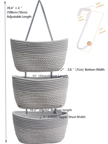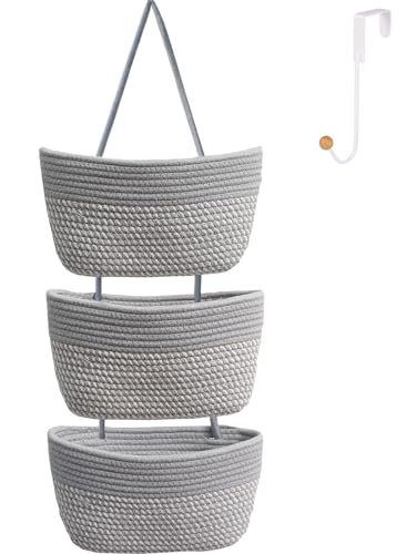- *Functional Baskets* Come with one over the door hooks for strong load-bearing capability. Our tiered hanging baskets work equally well as storage and decoration. You can use it for organizing scarves and hats behind the door, storing children's toys and diapers, collecting books and snacks,or displaying decorations in the living room.