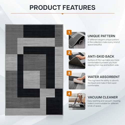 - UPGRADED ANTI SLIP BOTTOM: There are high-density non slip points on the bottom to enhance the grip between the carpet and the floor, prevent the rug from slipping around on your floor, providing effective safety and comfort for you and your family, ensuring that your carpets stay in place even with heavy foot traffic or constant movement.