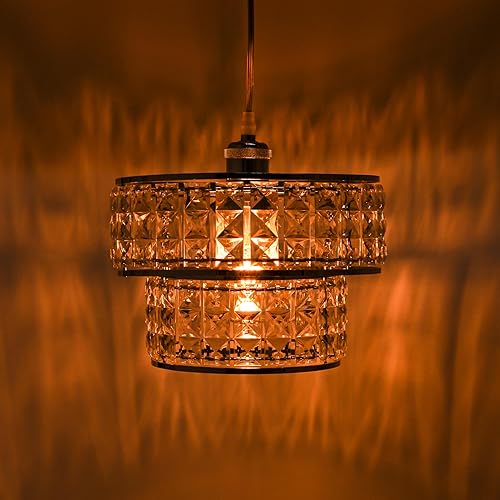 - ACRYLIC DRUM 2 TIER LAMPSHADE: This modern acrylic ceiling decorative lamp gives a great look to your living room, bedroom, kitchen, bar, café, restaurant. sparkly ceiling chandelier lampshade is adorned with clear acrylic with polished chrome plate detail along the sleek chrome frame.