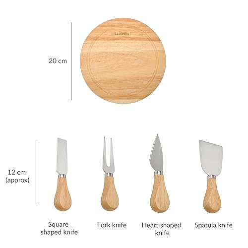 - THE PERFECT GIFT: The Innoteck Essentials cheese board is an ideal gift for any food enthusiast. The set comes with 4 tools and a smooth, round board to present your cheeses, fruits, vegetables, and meats. A thoughtful gift for anyone—whether it’s for Mom, Dad, Grandparents, your spouse, or anyone special in your life.