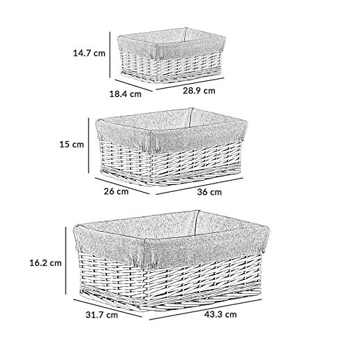 - WASHABLE CLOTH LINERS: Each basket comes with a washable cloth liner that keeps your items clean and prevents them from coming into direct contact with the wicker. These liners are easily removable and washable, ensuring that your storage remains fresh and hygienic.