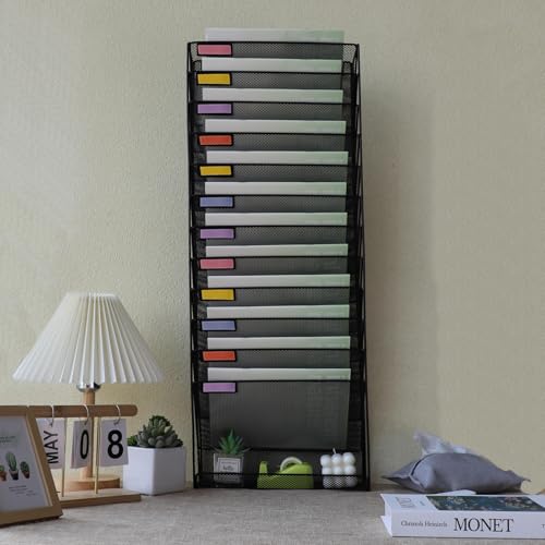 - Fashion & Popular: Elegant and contemporary mesh construction design that it can decorate your wall and keep your office or home clean and tidy, This 13 tier wall mounted magazine rack take full advantage of your vertical space