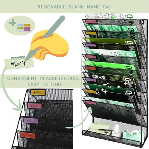 - Fashion & Popular: Elegant and contemporary mesh construction design that it can decorate your wall and keep your office or home clean and tidy, This 9 tier wall mounted magazine rack take full advantage of your vertical space