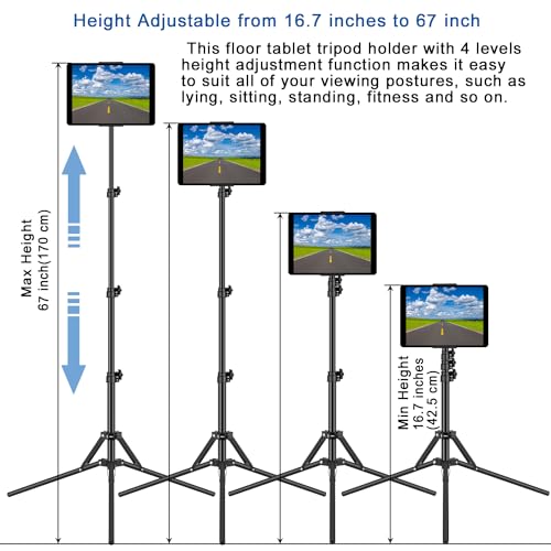 - 【Height Adjustable】Equipped with height adjustment function from69cm(27.1inch) to 165cm(65inch), makes this iPad floor stand easy to suit all of your viewing postures, such as lying, sitting, standing and so on. The best gift for wife,friend,or colleague.