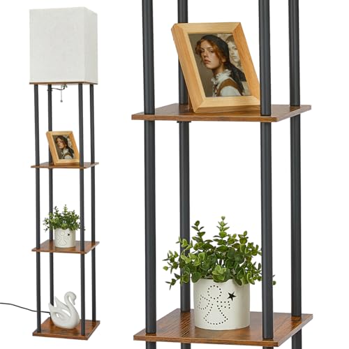 - Steel frame Structure and 3 Tier Solid Wooden shelves: Tall lamp stand replaces the traditional wooden frame with a steel frame, the base is thickened and heavier, which improves the stability and load-bearing performance. The 3-tier display shelves are made of solid wood, can allow you to store books, remote control, photo frames, artworks, potted plants and other items.You can place maximum of 50 lbs weight items on each shelf without wobbling.