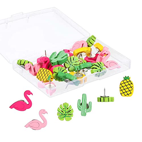 - 【Styling design】: The cork board pins pushpin uses five lovely designs of rose red flamingo, pink flamingo, pineapple, cactus, and tortoise leaf. The colors are vivid and lovely, and it displays the items that need to be decorated in life, making people see that they have good mood
