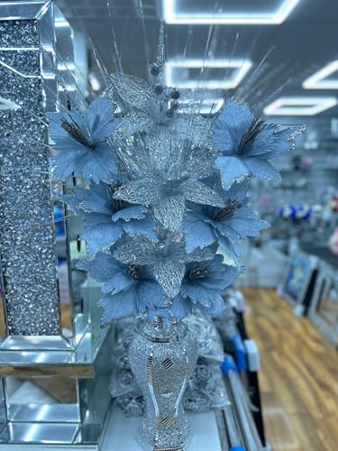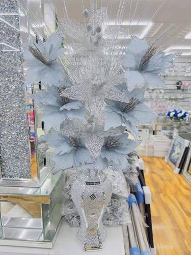 - ELEGANT DESIGN: Stunning artificial flower arrangement featuring silver-grey blossoms with crystallized glitter details and intricate mesh accents for a luxurious appearance