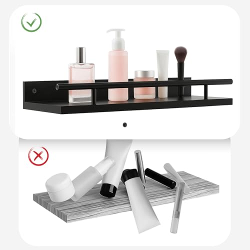 - Metal Fence:Metal guardrail effectively prevents items on each wall shelf from dropping, offering a secure storage space for bathroom accessories such as toilet paper, lotion container and essential oil. which gives you a more comfy use for years to come. The metal guardrail is forged from the toughest steel and powder coated to prevent rust for a long period of use. while the sturdy structure supports up to 20 lbs per shelf ensuring long-lasting reliability in any room of your home.