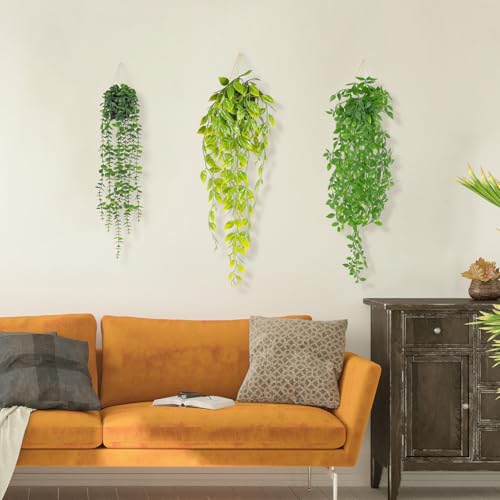 - Ready-to-Hang Set – Each plant comes in a lightweight, realistic plastic pot that easily attaches to a standard hanging basket or hook. They're ready to decorate right out of the box. Easily hang them using your own macrame hook or simply place them on a shelf for an instant, natural look.
