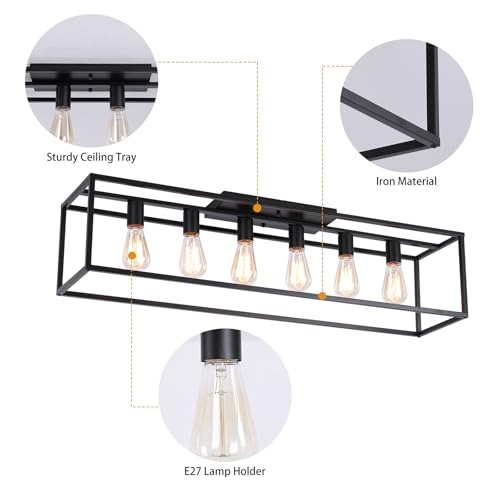 - Vintage Ceiling Light with 6 E27 Sockets: This flush mount ceiling light features 6 E27 sockets, each designed for a bulb with a maximum of 60 watts. It's compatible with incandescent, halogen and LED bulbs (not included bulb and wall dimmer). The open design allows the bulb to be easily visible, adding a unique decorative touch to your space
