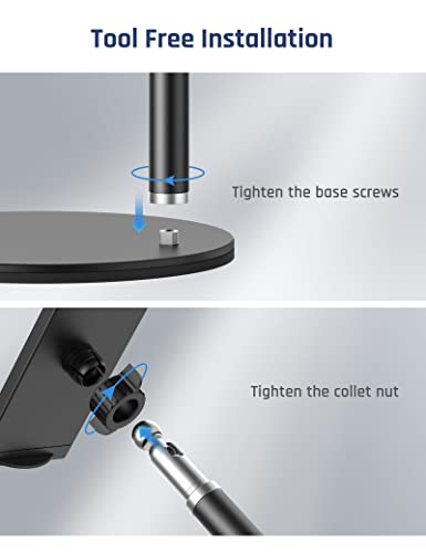 - Easy Installation and Use: Connect the stainless steel tube to the round base and tighten it, then place the tablet clip on top of the stainless steel tube and fix it by turning the nut-like part; Now simply adjust the suitable height by rotating the gold part in the middle of the stainless steel tube, and find the most suitable angle by rotating the clip part; No tools required, simple and practical;