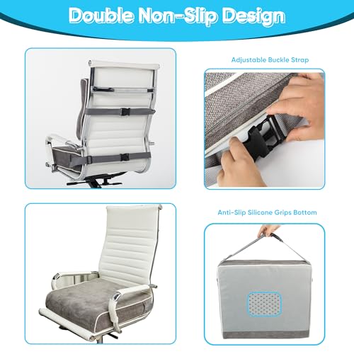 - ✅【Double Non-Slip Design for Safety】- Seat cushion for desk chair feature non-slip silicone grip bottom and adjustable straps for enhanced safety. The anti-slip dots prevent excessive movement, while buckle straps securely attach the computer chair cushion to the gaming chair