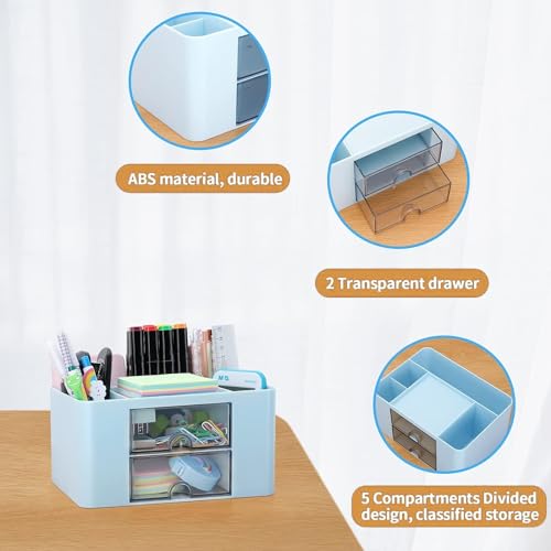 - [Compact] Included 3pcs compartment pen holders, 1pcs top tray, 1pcs notebook holder and 2pcs drawers, allowing to classify different documents, stationery, office notebooks, school stationery etc