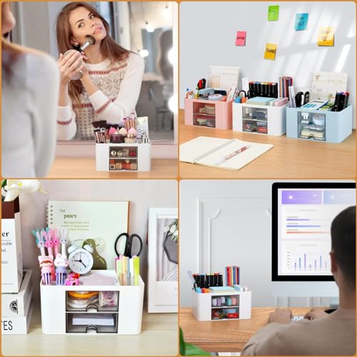 - [Applicable] Suitable for store desktop stationery and other small items, such as calculators, notepads, paper clips, pencils, scissors, flip charts, business cards, notes, etc. Can be used to store makeup brushes, lipstick, nail polish etc on the dressing table