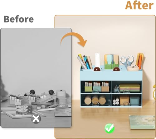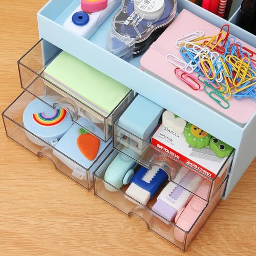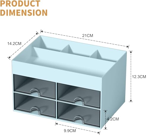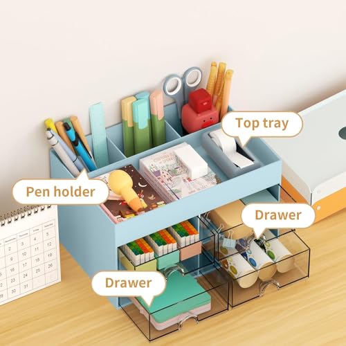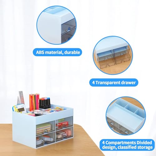 - [Compact and Enough Capacity] Included 3pcs compartment pen holders, 1pcs top tray, and 4pcs drawers, allowing to classify different documents, stationery, office notebooks, school stationery etc