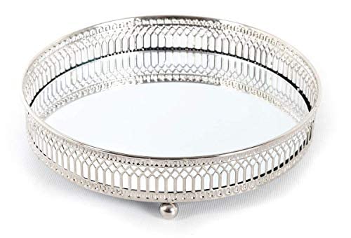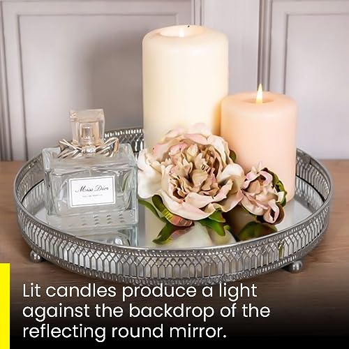 - CANDLE HOLDER: Super for displaying a range in sizes and styles of candles. Lovely decorative polished metal tray to display your tealights in style. Mirrored base and beautiful ornamental tray rim. Lit candles produce a light against the backdrop of the reflecting round mirror.