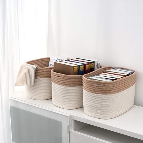 - 🎨【 Decorative Basket 】Crafted from two different coloured ropes, the cotton rope storage basket adds a touch of sophistication to any room while serving its functional purpose.The woven storage basket’s neutral colour palette complements any decor, making it an ideal decorative basket for your home.