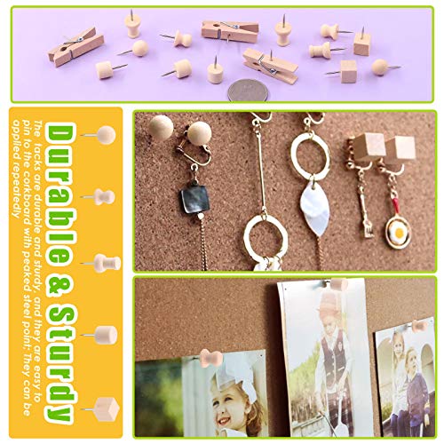 - 📌 Enough for Daily Life Demands — Our map thumb tacks set contains 6 types of wooden head push pins, including wooden clips, square, hat-shaped, I-shaped, cylinder & ball-shaped, to meet your multiple daily using demands such as: bulletin board decorations & marking, hang pictures, notices & posters, jewellery, mark locations, points of interests, travel routes, addresses and others on maps.