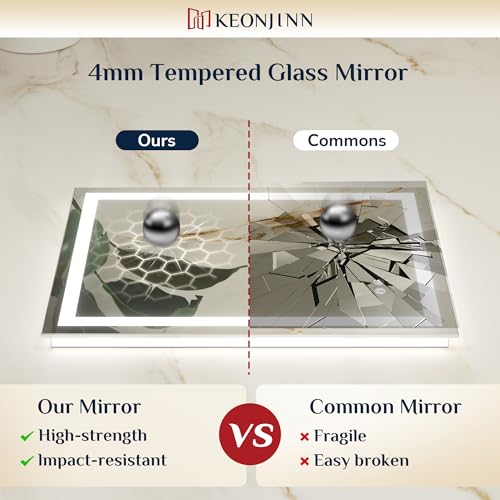 - 【IP44 Waterproof & Durable】Our light up mirror feature an integrated design that effectively prevents moisture and corrosion of the light strips. This rectangle bathroom mirror is produced with tempered glass that is highly impact-resistant, durable and safe to use.