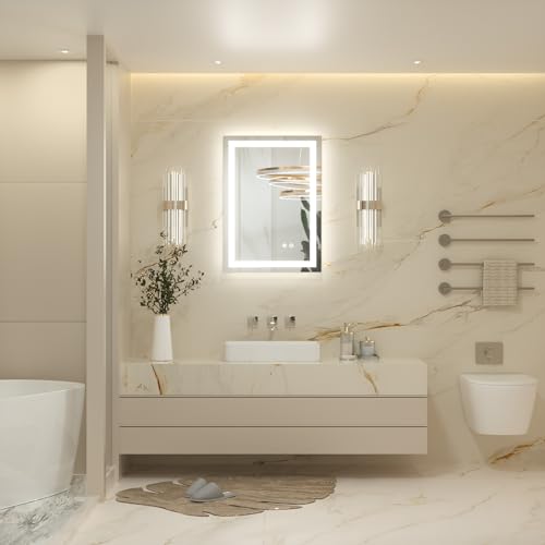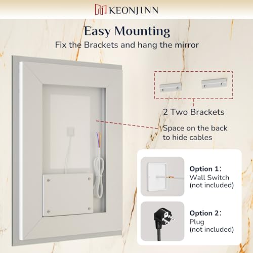 - 【Easy Installation】Installation is easy and simple by using french cleat. Simply secure the bracket and hang the wall-mounted vanity mirror. Cables can be hidden behind mirrors for a more aesthetic appearance.