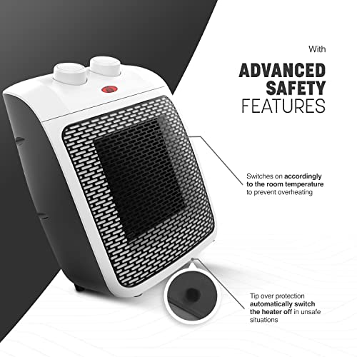 - 🔥 {ADJUSTABLE THERMOSTAT} – An easy-to-use and fully adjustable thermostat control is built into the mini heater to monitor the surrounding air temperature and shuts down after reaching the desired temperature, ensuring optimal heating efficiency