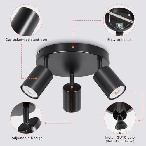 - 【Round chassis design】Black ceiling light fitting chassis adopts round simple design, elegant and durable. Kitchen spot lights body is made of iron, the surface of the lamps and lanterns with matte black antirust protective lacquer, moisture-proof and dust-proof, easy to clean