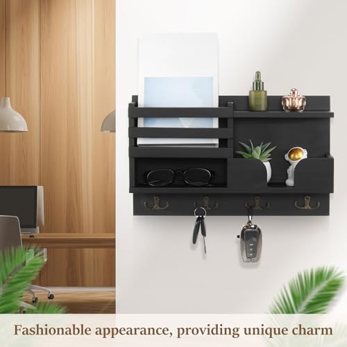 - Suitable Size: This mail and key organizer measures 41 x 25 x 10 cm / 16.14 x 9.84 x 3.9 inches, the size is suitable. It contains mailbox, display shelf and 4 hooks design, which can effectively organize mail and keys and keep your home space neat and orderly