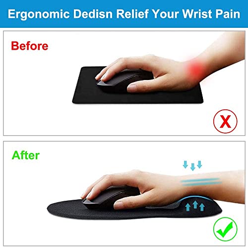 - Relief Elbow & Wrist Pain: 17.3*3*1 inch keyboard wrist pad and 10*9*1 inch mouse wrist pad fits most computers or notebooks, improve hand and wrist posture, avoid joint and wrist problems and release your elbows and shoulder stress for long hours of use on the computer.