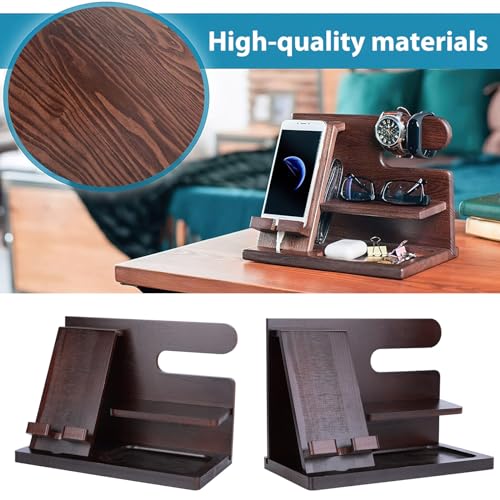 - 【Wooden Organiser Bedside】Never forget essential items with our wooden docking station as you head out of your home or office. Docking stations offer a space-saving solution to keep your phone and other essentials neatly organized.