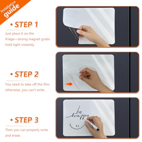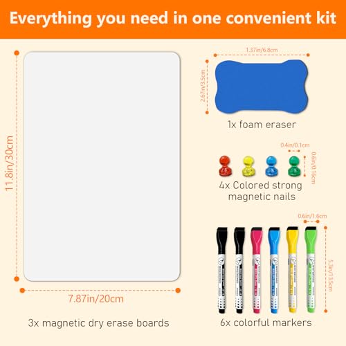 - COMPLETE SET: Includes magnetic whiteboard sheet (30x21cm), 6 colourful dry-erase markers, magnetic eraser, and 4 magnetic push pins for convenient fridge organisation