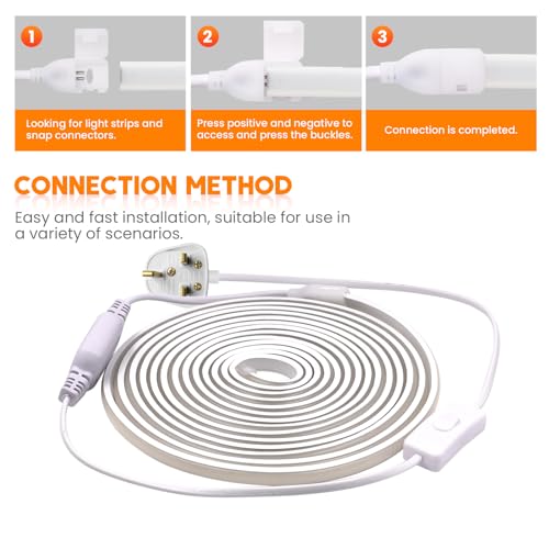 - 【Waterproof LED Strip: 】The working voltage of tape lighting is 220V, power: 6-10W/m, strong heat dissipation, and the width of 9-10mm is easy to install in narrow places.The cob led strip is well covered with a silicone layer which is of IP67 effect, strong sealing, can be used indoors and outdoors. Decorate aquarium, swimming pool or brighten up your bedroom, living room, party etc. (The power cord is not waterproof, please make sure it is waterproof when used outdoors.)