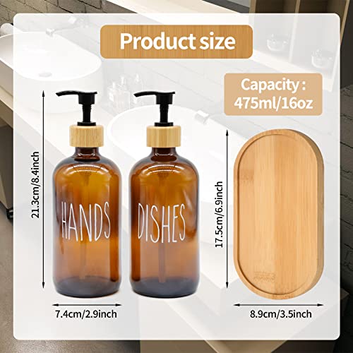 - Glass Soap Dispenser Set with Bamboo Tray – The package include 2 soap bottles with pump and 1 bamboo soap tray. High quality printing lettering, will not fall off. Each bottle is clearly marked for each type of liquid to avoid any confusion! It is a perfect home decor.