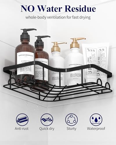 - QUICK INSTALLATION: Kitsure wall-mounted corner shower racks offer a hassle-free and drill-free installation process while taking up minimal space. Simply follow the straightforward instructions, and you'll have your shower essentials neatly organized in no time. If you need to remove the shower shelf, heat the adhesive tape with a hair dryer and peel it off.
