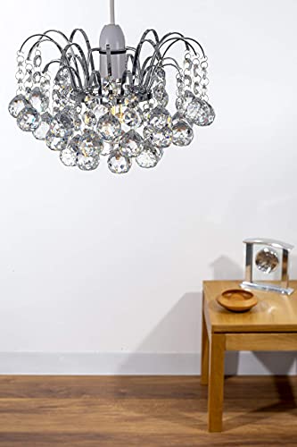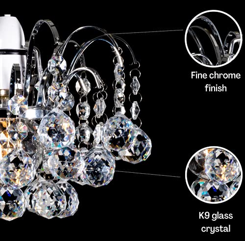 - ELEGANT DESIGN: The elegant Crystal Faceted Oriel design of this light shade ceiling gives a luxury premium look. The K9 Glass Crystals Balls / Baubles are neatly held in a rust-free chrome metal frame shaped like a Chandelier. Each Crystal Ball is accompanied with crystal beads forming a crystal droplet which is then hanged on the chandelier metal structure. The Pendant Light Shade allows enough light to pass through, creating beautiful reflective patterns.