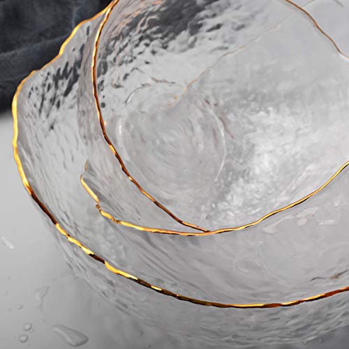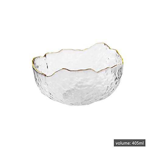 - Fashionable Design: Irregular glass bowl non-slip hammer pattern design, stylish and elegant. Similar to the irregular shape of the edge of lettuce. Add gold rims to make your salad bowl a practical work of art on the table