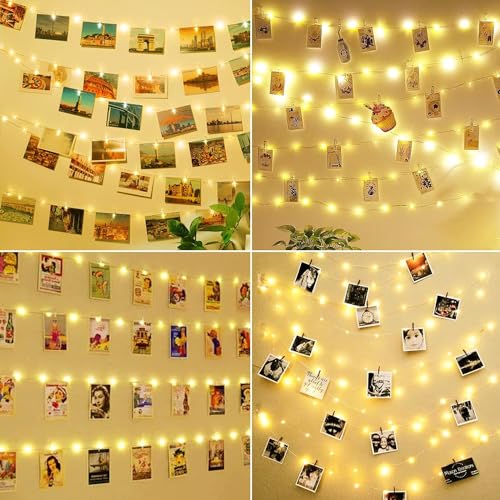 - 【Perfect room decoration】Suitable for garden, porch, living room, bedroom and other home decorations. You can also use these fairy lights photo clips to decorate parties, Halloween, Thanksgiving, Christmas, etc. and add a beautiful glow to your life. These beautiful LED fairy lights emit a cozy warm yellow light that adds a warm magical feeling and brings vibrant life.