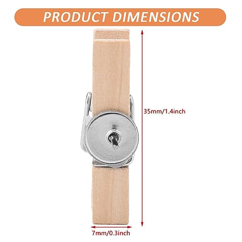 - 50 Pieces wood clip pins are made of natural wood and metal pins, durable and not easy to fall off. Included in our set is 50 push pin pegs. Each peg is 3.5cm (1.37 inch) in length, 1cm (0.39 inch) in height and features a 1cm long pin with a base diameter of 0.8cm.