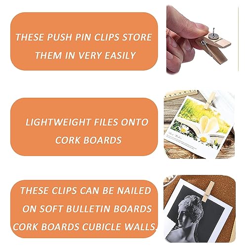 - 50 Pcs Wooden Clip Thumbtack Push Pins With Wooden Clips for Wall Cork Boards, Paper Notes, Photos, Projects, Decorative Crafts and Drawing.