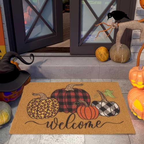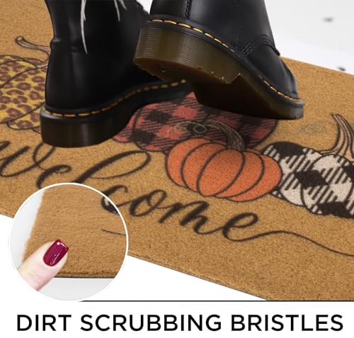 - 【Protect Yours Floors】halloween pumpkin welcome mats for front door are a great addition to any home, welcoming guests and family alike. The artificial coir mat effectively traps loose grass, mud, and debris, ensuring clean shoes upon entering the house and protecting your floors.