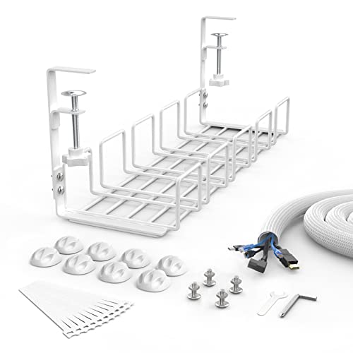 - 【PERFECT COMBINATION】 The desk cable management kit contains 1 cable management tray, 8 cable fixers, 10 cable ties and 1M cable hose, allowing us to keep the desk more neat and tidy.