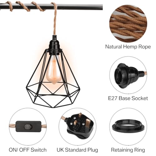 - Cable length: approx. 6.7 Meters twisted brown braided cable, You can adjust the fixture length as per your need.